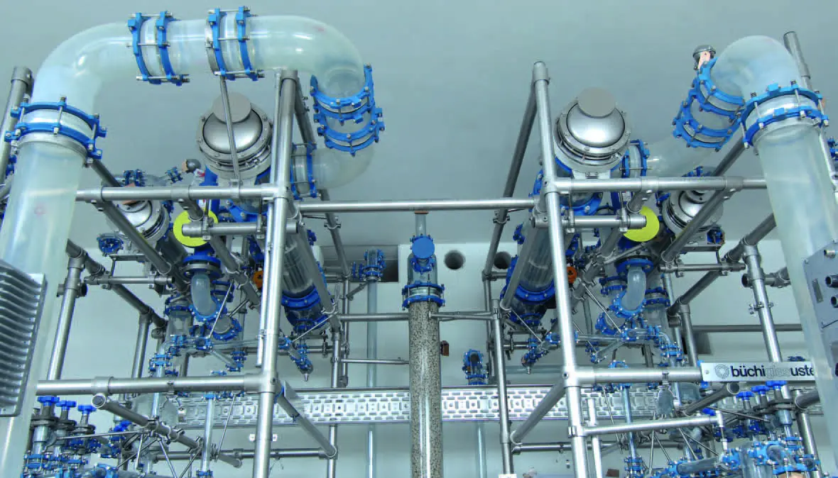 Exempel på glasöverbyggnad från BüchiGlas är kondensatorer, kolonner, fasseparatorer, satsnings- och mottagningskärl. Allt glas kan armeras för ökad säkerhet eller färgas som UV-skydd.