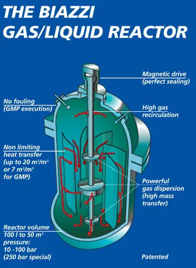 Biazzi reaktorer för hydrering och nitrering. Biazzis teknologi garanterar bästa massöverföring och optimal energianvändning. Välutrustat utvecklingslabb för optimering av specifika processer för uppskalning.
