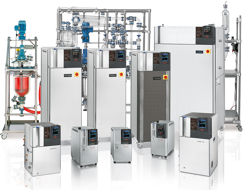 Huber tillverkar kyl- och värmetermostater, även kallat oljebad, från de minsta bordsmodellerna upp till 130 kW. Mindre modeller har oftast ett öppet bad där man kan sänka ner provrör och mindre glasreaktorer medan större system cirkulerar olja i en sluten krets. Huber ligger i framkant med miljöanpassade köldmedia (naturgas) för lägsta tänkbara GWP och från och med 2024 ingår 4 års garanti på delar, när maskinen registreras.